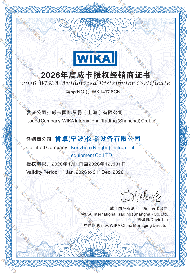 肯卓(宁波)仪器设备有限公司是一家专业销售测量温度、压力、液位、流量、阀等相关仪器仪表产品的公司。公司主营代理威卡WIKA(包含威卡旗下品牌泰科思Tecsis、柯普乐KSR KUEBLER),从事压力、温度及液位等测量仪器仪表的销售、客户定制化的测量解决方案、现场服务及安装指导、仪表校准服务、产品技术咨询及培训等业务,致力于为工业及过程领域的广大客户提供优质的服务。